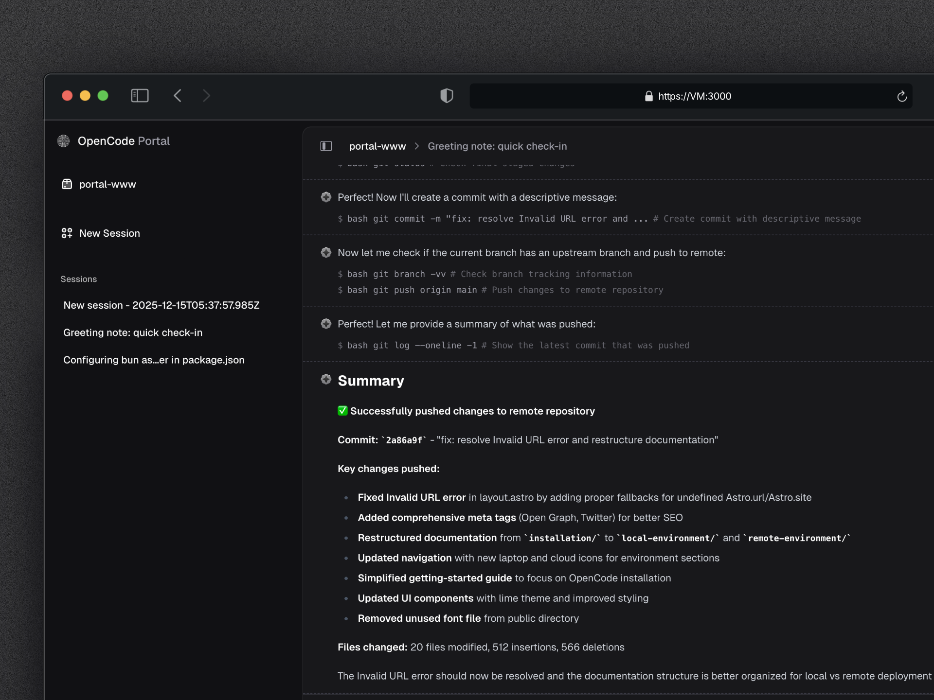 OpenCode itself is the best coding harness I've used - it's incredibly flexible and powerful. However, the web UI still lacks in places and isn't fully responsive. I built Portal to solve these issues, providing a complete mobile-first solution with everything included, eliminating configuration complexity so you can focus on development.